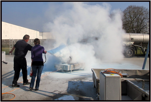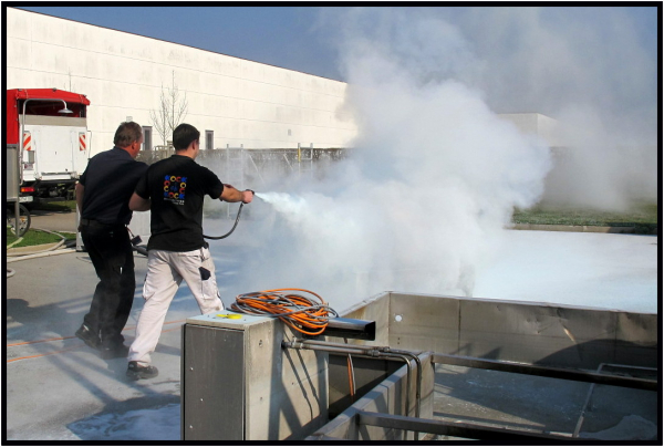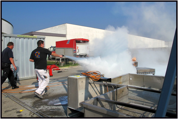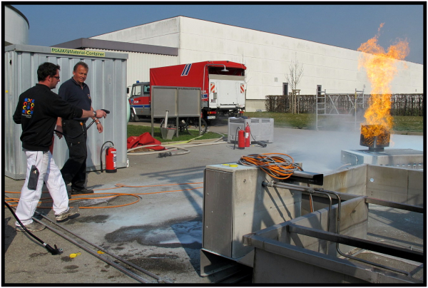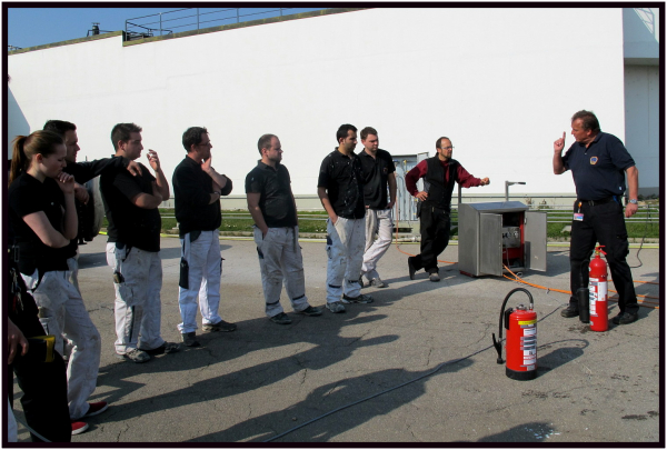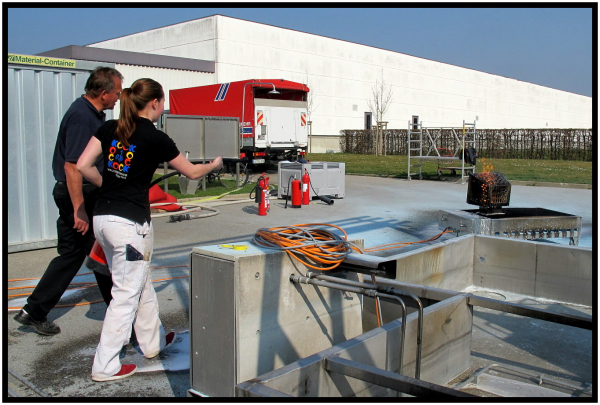 Die Werkfeuerwehr der DSM Nutritional Products GmbH aus Grenzach-Wyhlen bietet Unternehmen an, unter Aufsicht und in sicherem Rahmen, den Umgang mit dem Feuerlöscher zu erproben.